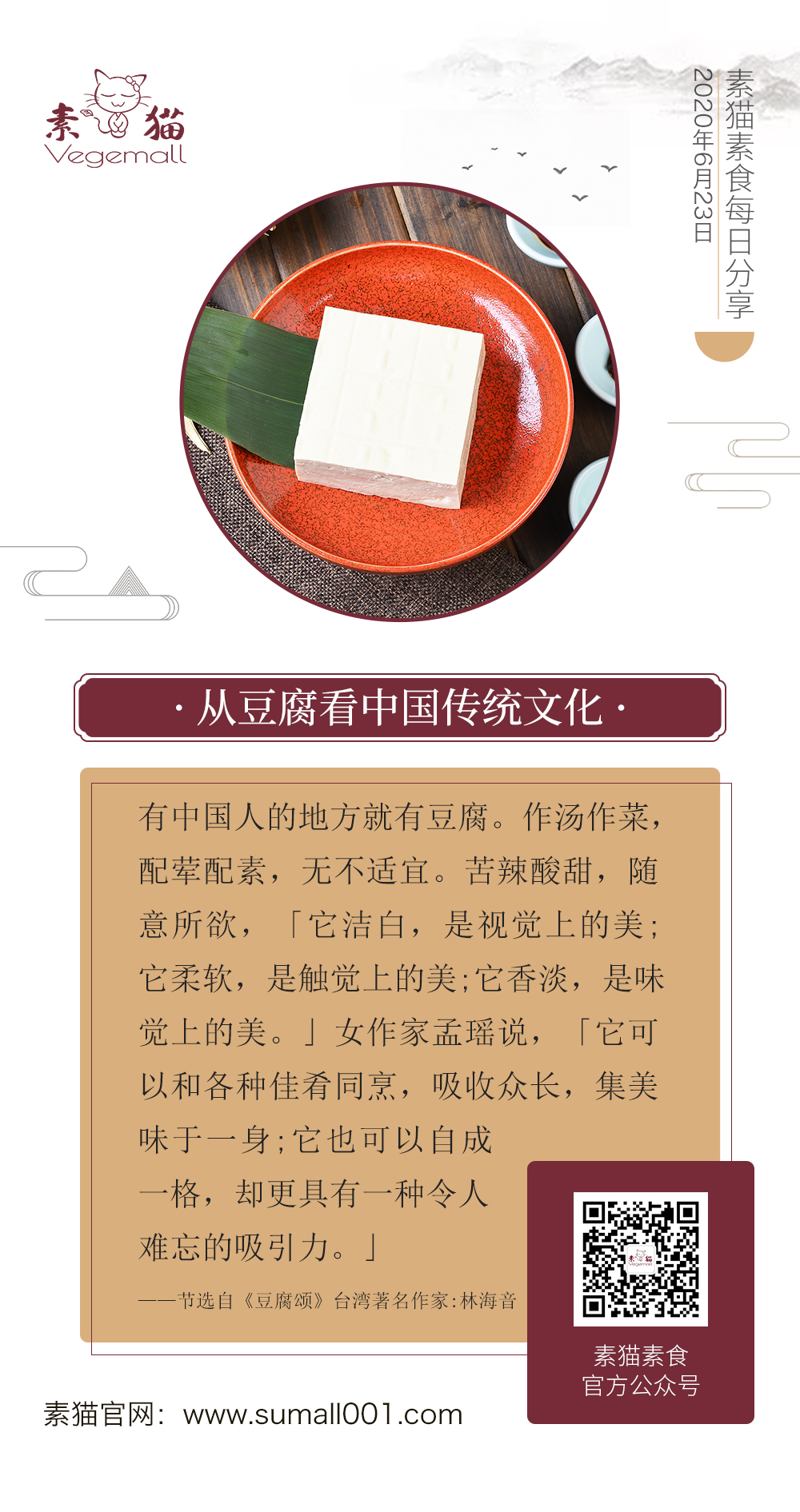 有中國人的地方就有豆腐。其自成一格,給人一種難忘的吸引力~ 2020/06/23 分類:豆腐禪 1627 有中國人的地方就有豆腐。豆腐有視覺、嗅覺、觸覺、味覺之美,更重要的是其自成一格,給人一種難忘的吸引力~ 上一篇: 從豆腐看中國傳統文化之豆腐“十德” 下一篇: 疫情考驗后,豆制品或將成為世界上最安全的食品